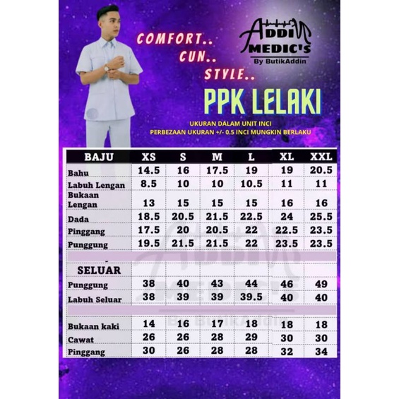 Set uniform seragam ppk pembantu kesihatan lelaki addinmedics murah raya2022.